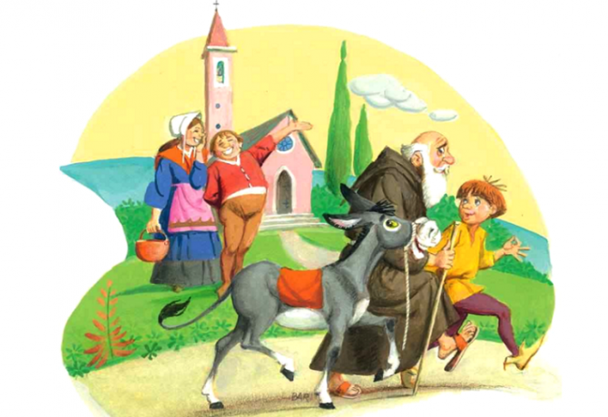 “Olha que coisa estranha esse homem no animal! É o velho que deixa o jovem andar no cavalo, sem se cuidar da fatiga e da lama! Não é uma loucura? Os dois deveriam ir sobre o asno. Seria melhor!”
